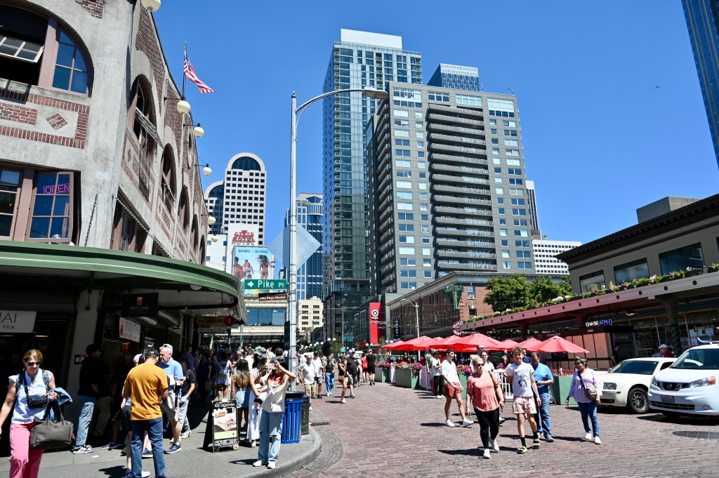 It was early July 2024, and the summer energy was alive on the streets of Seattle. The sound of crowds filled the air, with people moving through the Historic Pike Place Market District. I stood on the corner of Pike Place, just outside Aditi Chai, and looked up at the towering buildings a few streets over. There was a cool breeze, and the colorful flowers adorning the restaurant rooftops gave the area a lively yet serene atmosphere. As I snapped a photo with my Nikon Z6ii, I couldn’t help but notice how many others were doing the same, capturing the moments of their day in this iconic part of the city.