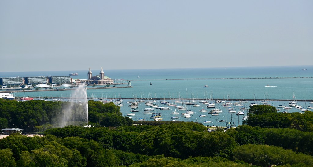 After a day of sightseeing aboard the open-roof bus, we found a perfect spot just outside the Adler Planetarium. With Lake Michigan stretching before us and the Chicago skyline rising in the distance, it was the perfect moment to capture the city in its full glory. Sitting on the lawn, I could finally take in the view I’d been searching for—a panoramic picture of the city I had yet to truly see.